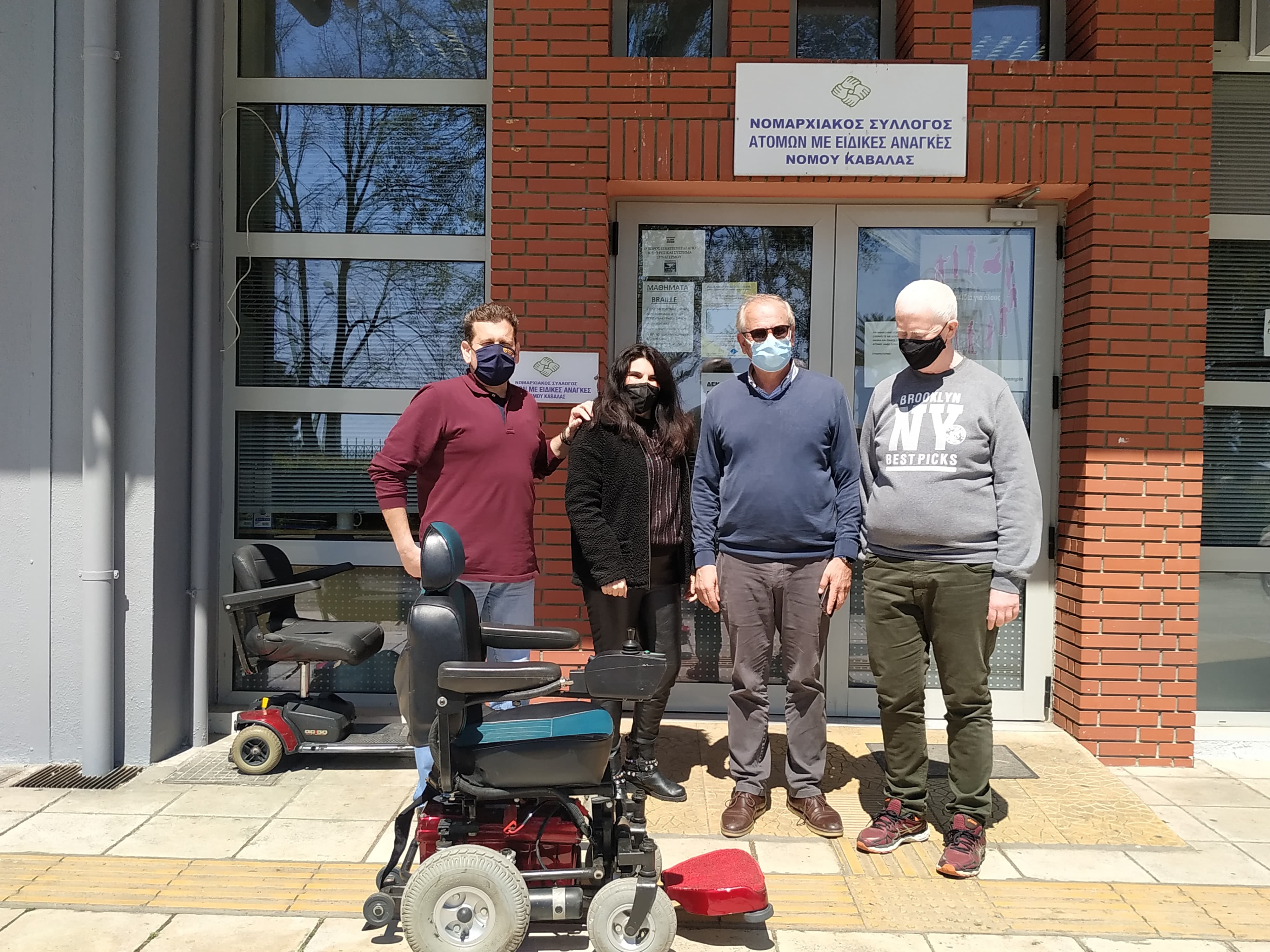 Ο Νομαρχιακός Σύλλογος Α.μεΑ. νομού Καβάλας ενημερώνει τα μέλη του ότι στην κατοχή του συλλόγου έχει περιέλθει ένα ακόμη ηλεκτροκίνητο αναπηρικό αμαξίδια, έπειτα από δωρεά συμπολίτη μας. Το ηλεκτροκίνητο αναπηρικό αμαξίδιο , με πρωτοβουλία του δημάρχου Καβάλας και σε συνεργασία με το τεχνικό τμήμα του Δήμου Καβάλας, συντηρήθηκε και είναι έτοιμο προς παραδώσει σε όποιον συμπολίτη μας με κινητικά προβλήματα το έχει ανάγκη.