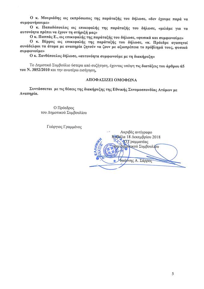 Ο Δήμος Καβάλας και το Δημοτικό του Συμβούλιο σύσσωμο γι άλλη μία φορά στο πλευρό των Ατόμων με Αναπηρία.